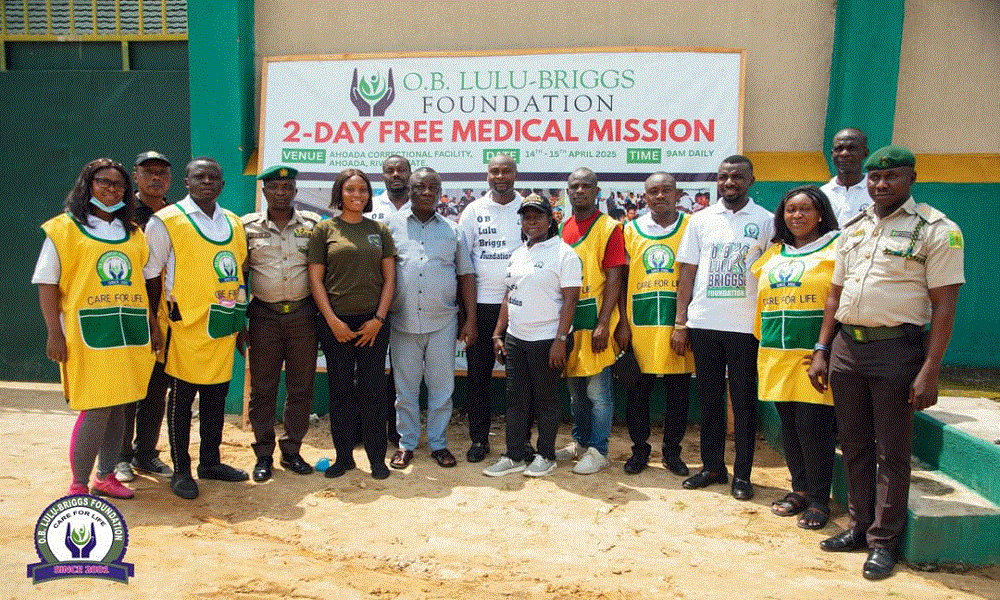 In a heartwarming demonstration of compassion and commitment to public health, the O. B. Lulu-Briggs Foundation has delivered a two-day free medical mission to inmates and staff of the Nigerian Correctional Center in Ahoada, Rivers State, bringing critical healthcare services behind prison walls.